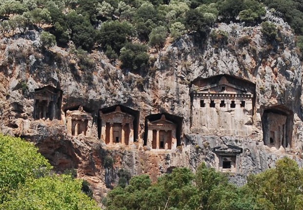 Potremo scegliere di risalire il vento, ormai divenuto brezza costante, per raggiungere le meraviglie archeologiche di Kaunos e le suggestive tombe rupestri, per poi ridiscendere nella rada di Fethiye, con i suoi mille ancoraggi naturali.