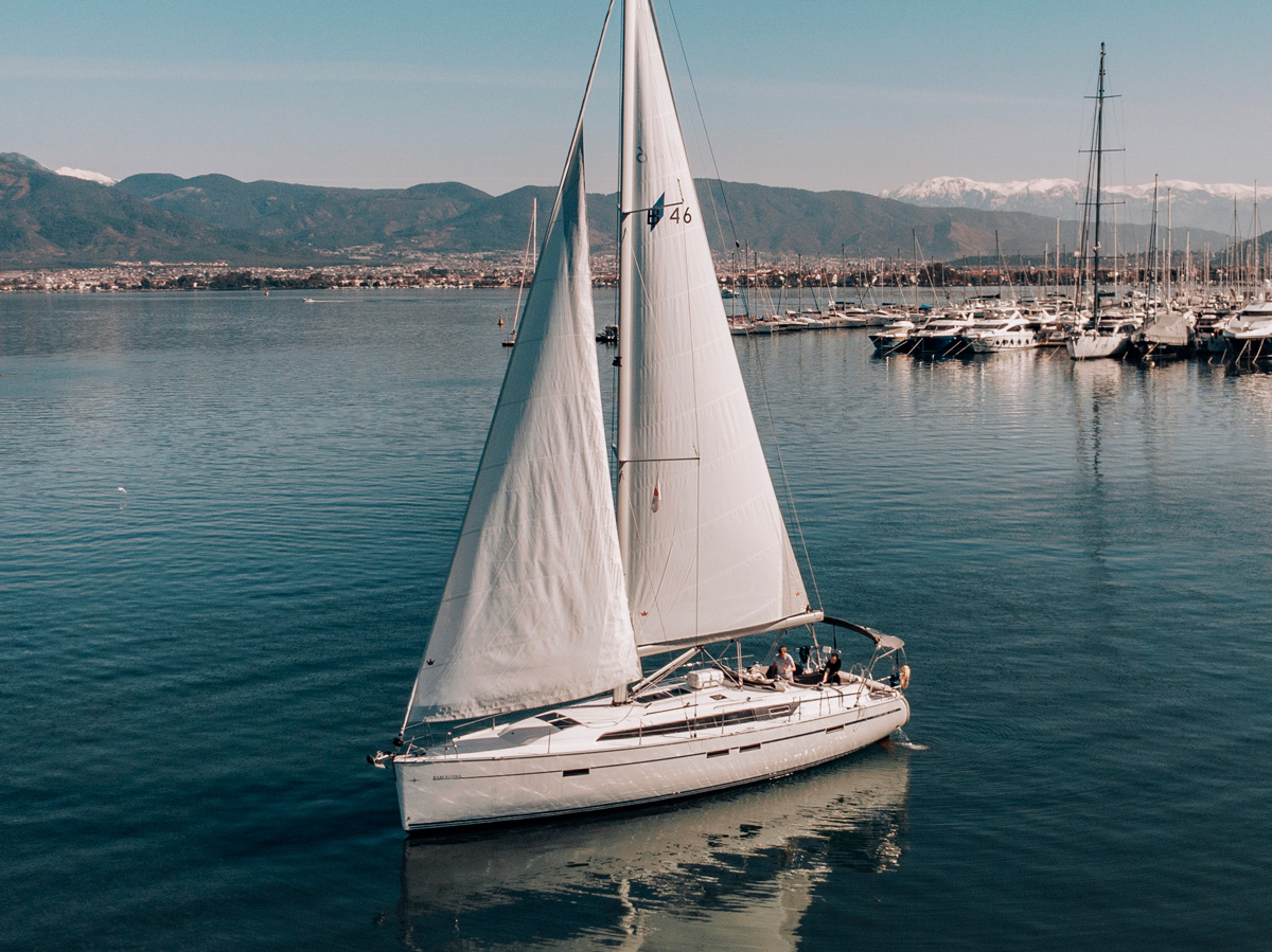 Una flotta di due barche gemelle, Bavaria Cruiser 46, di recentissima costruzione e dotate di quattro cabine doppie e tre bagni ciascuna, salperà — dopo l’arrivo all’aeroporto di Dalaman (circa 40 km) — dal Marina di Fethiye, affacciato sullo splendido Golfo di Fethiye.